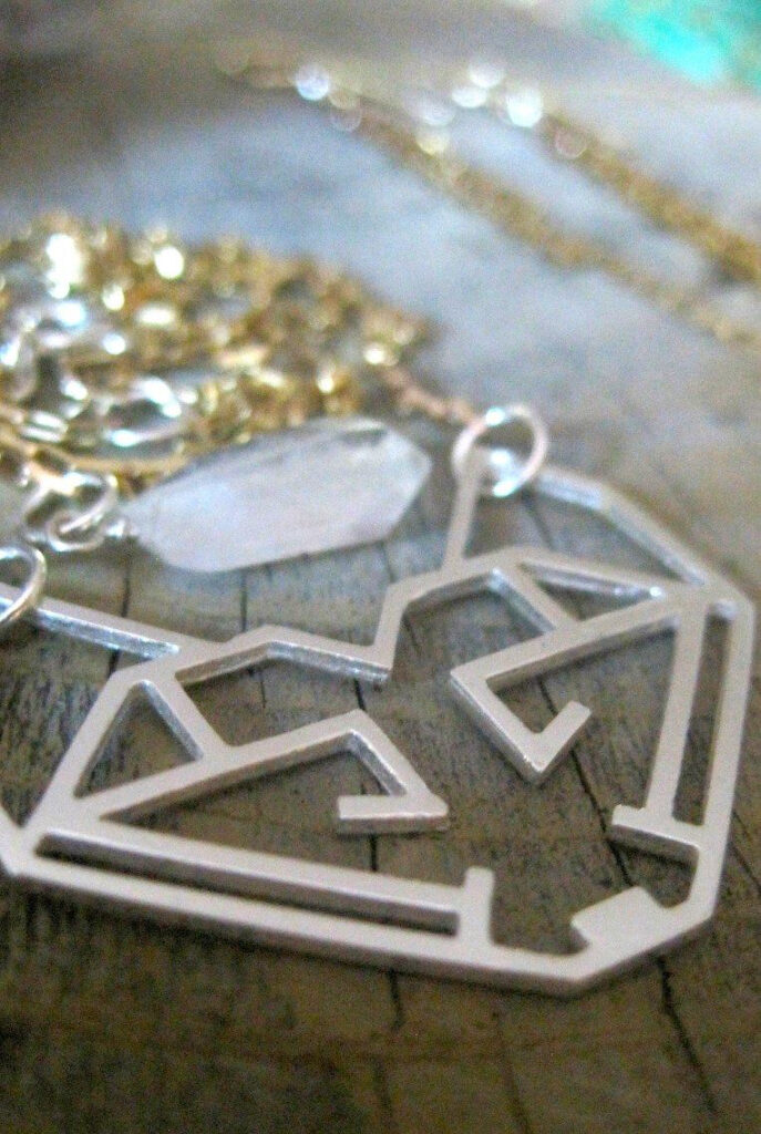 Futuristic Fox made From Sterling Silver, on Venetian Sterling Silver or 14 K Gold Filled Chain. Finished with Genuine Moonstone. Find out more on how the Fox came to be ✶ – on the Art Therapy & Inspiration Page!