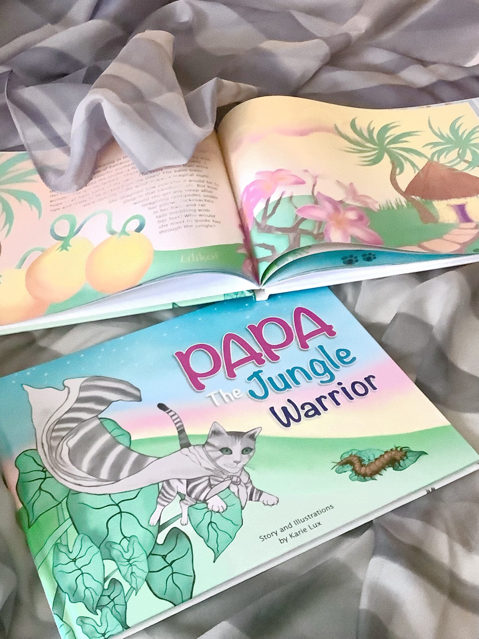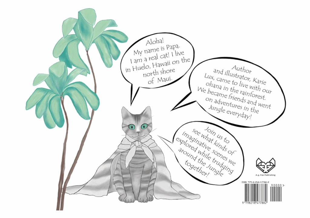 ” Papa the Jungle Warrior” storybook is based on an actual cat and some actual curious events that happened on the island of Maui, Hawaii. What imaginative scenes did Papa and his new friend explore?