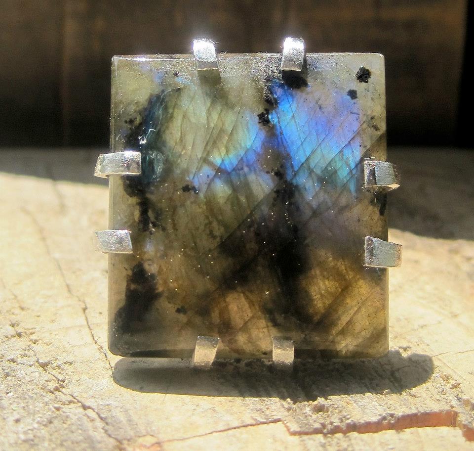 Flashy Labradorite Cocktail Ring – Handmade Sterling Silver Setting