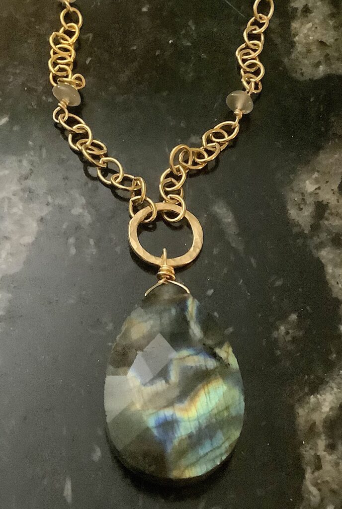 Flashy Labradorite on Handmade Soldered and Hammered 14K Gold Filled Link, 14K Gold Filled Chain, Finished with Labradorite beads. 22 inches
